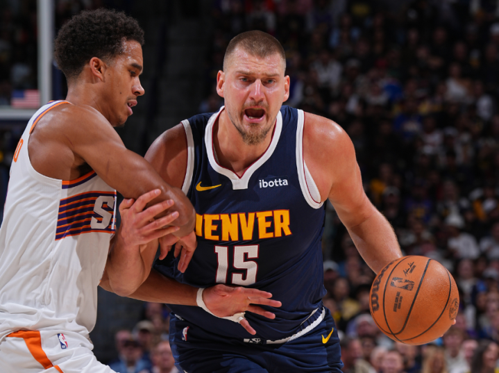 易边再战,约基奇连续得分带队领先到20分,之后掘金进攻哑火,布克和狄龙带队一波10-0追到10分,约翰逊连得4分止住颓势,布朗输送三分,布劳恩连得5分,掘金又领先到20分;布克两罚全中,邓恩命中三分,阿伦反击上篮,随后约基奇勾手得分,布劳恩反击扣篮,三节打完掘金100-83仍领先17分,约基奇前三节拿到12分12篮板14助攻。